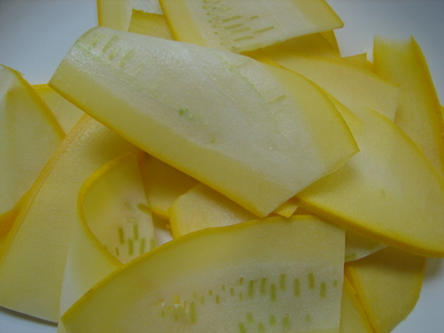 Eu estou me surpreendendo este ano. Estou usando todas as variedades de abobrinhas que estão vindo aos montes na cesta orgânica. Essa amarela eu coloquei num stir fry.