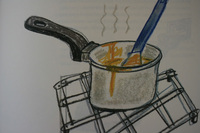 A editora Phaidon já tinha traduzido a biblia da cozinha italiana—The Silver Spoon que me deixou um pouco decepcionada, já que as duas primeiras receitas que fiz do livro falharam. Mas tudo bem, não estou aqui só por causa das receitas. Gosto das histórias, fotos e ilustrações, que são sempre uma inspiração. Por isso comprei a tradução que a Phaidon fez da biblia espanhola—1080 Recipes, toda decorada por esses desenhos maravilhosos do designer Javier Mariscal, de Barcelona. Se essa biblia também me desapontar não vou ficar chateada. Só o prazer de folhear as receitas decoradas por essas ilustrações fofíssimas já valeu o investimento.