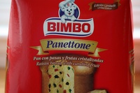 Eu reclamando dos divinosmaravilhosos panetones italianos e suas injustas porcentagens de trans-fat e ele me aparece com esse panetone BIMBO made in Peru—com ZERO de trans-fat, mas com uma cor amarela nada natural e e salpicado de frutas cristalizadas falsas com cores fluorescentes. Fruta cristalizada falsa é simplesmente o fundo do poço das aberrações comestíveis!