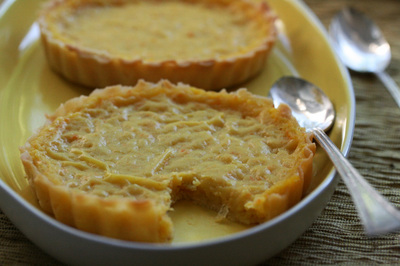 Lemon curd pra mim é uma coisa deliciosa, doce e ácido, perfeito para rechear tortas ou bolos, ou mesmo para comer com waffles. O duro era encontrar um lemon curd que não tivesse gosto artificial e consistência de coisa engrossada com maizena. Quando eu achava um de ótima qualidade, eu estocava. Mas agora, com essa receita da musa Alice Waters, nunca mais comprarei um vidro de lemon curd na vida. Fiz o lemon curd e forrei as forminhas de torta com fundo removivel com uma massa básica de torta, esticada bem fininha. Assei a massa, em forno pré-aquecido em 350ºF/176ºC até a massa ficar dourada. Recheei as forminhas e assei novamente por uns 15 minutos ou até o lemon curd ficar firme. Simples, fácil e simplesmente o fino da bossa!