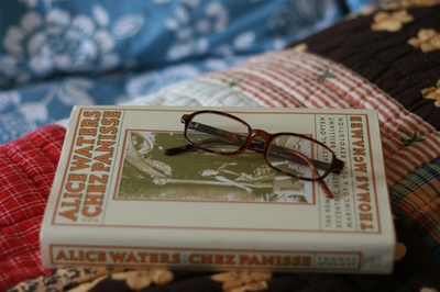Depois de ler o capítulo dedicado à Alice Waters no The United States of Arugula, fiquei tão impressionada com as idéias dessa mulher que no meu velho estilo de obcecada, fui atrás de mais informação. Esse é o meu modus operandi—se eu gosto de um ator ou diretor vejo TODOs os seus filmes, se gosto de um autor leio TODOS os seus livros, se me interesso por um assunto preciso exaurir, achar todas as informações, histórias, fotos, documentação. E pra se aprofundar na história da Alice Waters e seu fabuloso empreendimento gastrônomico, que incluí o restaurante Chez Panisse e o projeto educacional dos Edible Schoolyards, nenhuma fonte seria mais completa do que esse livro do Thomas McNamee—Alice Waters and Chez Panisse: The Romantic, Impractical, Often Eccentric, Ultimately Brilliant Making of a Food Revolution. Estou devorando esse livro há semanas. Marcando as páginas com receitas simplérrimas e deliciosas, marcando histórias que achei bacanas e que quero contar aqui, divagando e comentando com o Uriel sobre um monte de coisas com que me identifiquei e me apaixonei. Estou esperando acabar de ler o livro pra finalmente fazer uma reserva no restaurante. Dá até um medinho de me decepcionar, porque o livro do McNamee me fez sentir amigona próxima da Alice. Me fez até delirar na possibilidade de largar meu emprego na Universidade da Califórnia e ir me oferecer pra começar do zero lá no CP, lavando pratos! Por causa desse livro vão pintar ainda muitas histórias sobre a Alice e o seu restaurante por aqui. Muita paciência, pois eu tenho esse jeito bitolado e quando eu encasqueto com algo, fico batendo na mesma tecla até a obsessão passar. I just can't help it!