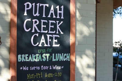 Desde que chegamos em Davis que o café da manhã do Putah* Creek Cafe na cidade de Winters** nos tinha sido recomendado. Mas em todos esses anos nós nunca fomos lá. Frequentamos muitas vezes o restaurante em frente, uma steak house chamada Buckhorn, de onde víamos o pequeno café da esquina com fachada cor-de-rosa. Na semana passada eu estava folheando um número da Sacramento Magazine quando vi uma reportagem intitulada restaurants worth the drive—um deles, o Putah Creek Cafe. Decidi que tinha finalmente chegado a hora de irmos checar se o lugar era bom mesmo.