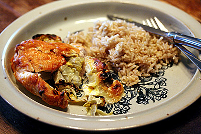 Eu servi com arroz basmati integral cozido no caldo de cogumelos.