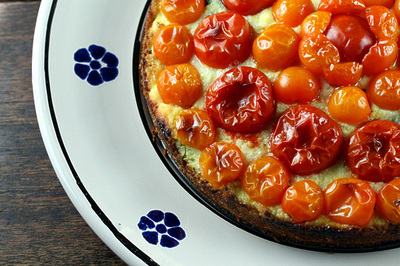 E desta vez matei os tomatinhos pequenos, amarelos e vermelhos, numa torta que revelou-se no mínimo o máximo. A receita saiu da supimpa Everyday Food.