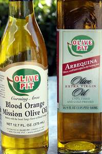 Depois do almoço no Granzella's em Williams, dirigimos mais umas trinta milhas em direção ao norte, com destino à cidade de Corning no condado de Tehama, conhecida como the olive city—a cidade das azeitonas. Corning fica no meio de campos imensos de oliveiras e tem uma loja famosa que vende azeitonas e azeites de todos os tipos. Fiquei impressionada com a quantidade de maneiras diferentes de preparar as azeitonas, e com as inúmeras variedades que a loja oferecia. Comprei um azeite não filtrado feito com a variedade Arbequina e um outro feito com a variedade Mission prensada junto com laranjas vermelhas.