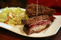 R: a primeira foto eh um pratinho cheio de SAL. :-) o sanduba no pao preto eh o Reuben, com pastrami e chucrute, uma delicia!