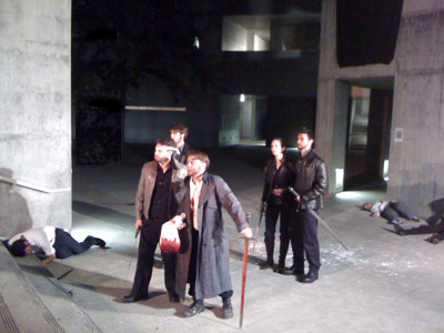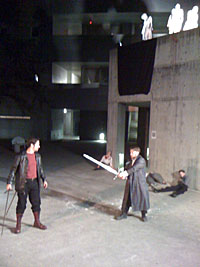 No inicio do outono o mesmo grupo anunciou que montaria uma versão modernex de MacBeth e desta vez não iríamos dormir de touca, pois teríamos um motivo particular para estar na fileira do gargarejo na estréia. Na trama sangrenta, onde o enlouquecido casal, sir e lady MacBeth, se embola numa matança sem fim, na ambição de chegar ao poder no reino da Escócia, há muitas lutas. E essas lutas precisam ser coreografadas. Nunca tinha pensado nisso até o Gabriel nos dizer que ele iria fazer a coreografia das lutas de espada e adagas para a peça.
