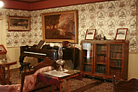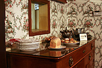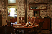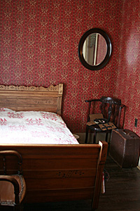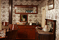 Escolhemos visitar primeiro a Astor House, uma pequena pensão no centro da cidade que serviu aos mineradores, estudantes e famílias. Quando pisei na casa, despiroquei! Está tudo preservado como era no século 19, com móveis, objetos, dá até pra sentir o clima da época, como a vida era naqueles tempos. Visitamos a casa inteira, dois andares—em baixo sala de estar e jantar e a cozinha [que terá um post à parte] e no andar de cima, os quartos e a varanda. Havia painéis com audios espalhados pelos cômodos pra se apertar os botões e ouvir as histórias sobre a casa, as pessoas que viveram lá, os hábitos da época e da cidade. Além de todos os mil micro detalhes, ainda podia tocar em tudo e fotografar dentro da casa e eu me esbaldei. Muitas fotos ficaram escuras, mas com essas já dá pra ter uma idéia. Curti tanto esse passeio, que até melhorou minha dor de cabeça!