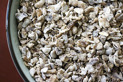 A Califórnia tem uma safra bem grande e variada de tâmaras. Elas aparecem no mercado no inicio do outono e são simplesmente deliciosas. Fresquinhas, elas são puro mel. Sendo assim tão doces, é muito natural que elas pudessem se transformar em algum tipo de adoçante. Tenho visto muitos tipos de açúcares diferentes, além dos usual suspects feitos de cana e de beterraba. No meu Co-op tem açúcar de palmeira de coco, de maple e de tâmara pra vender. Mas foi no Farmers Market que comprei esse açúcar de tâmara artesanal, na mesma banca da moça que aparece somente durante um período do ano, vendendo também as frutas frescas. Esse açúcar é feito da tâmara desidratada e depois picada. Ele não dissolve como um açúcar normal, mas é bem doce e dá pra usar em receitas de bolos e tortas e para polvilhar sobre saladas de frutas, iogurtes, misturado com a granola e o que mais a imaginação mandar.