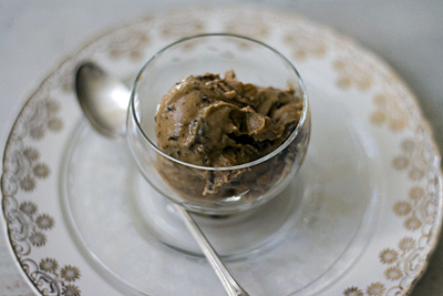 Sem querer eu provoquei um pequeno desequilibrio quando preparei essa deliciosa sobremesa na semana passada, pois fiz mais calda de ameixa do que panna cotta de coco. E quando acabou o creme, ficou um bocado de ameixas sobrando. Não tive paciência para pensar em fazer outro acompanhamento cremoso pra elas e me ancorei na solução mais fácil. Fiz um sorvete com iogurte. Foi só misturar 1 xícara das ameixas com 1 xícara de iogurte natural integral e um splash de vodka. As frutas já estavam bem doce por causa da calda, que ficou bem grossa. Bati tudo ligeiramente no liquidificador—as ameixas eram descaroçadas, e coloquei na sorveteira. Talvez numa outra oportunidade eu prepararia esse frogurt com menos ameixa ou mais iogurte, pois a combinação de um pra um rendeu um sorvete bem cremoso e denso. Mas nós gostamos dele mesmo assim, um sabor intenso de ameixa com um toque de limão.