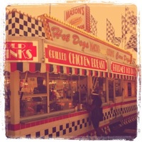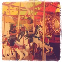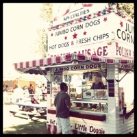 Foi a minha primeira visita à uma fair americana e até que achei legal. Lá bebemos limonada com cereja e muita água porque a tarde estava quente. Eu comi um taco com salsa, depois um corn dog e devorei um float de root beer do tamanho do universo, com quatro bolas de sorvete de baunilha e uma garrafa do clássico refrigerante. O Uriel comeu um milho assado na palha e eu comprei um torrão imenso de toffee de caramelo com castanhas e coco, que não conseguimos comer nem um décimo. Fairs são ótimas para comer porcarias, doces e frituras. Nessa até que não tinha algumas barbaridades como os deep fried de twinkies, twix ou oreos. É bem perceptível que absolutamente todo mundo come os corn dogs, que são umas salsichas enfiadas num palito e depois empanadas com uma massa de milho e fritas. Um grupo de casais já pelos seus setenta anos sentado na mesa na nossa frente devorava corn dogs como se eles fossem a iguaria mais fina e sofisticada do mundo. A explicação é bem óbvia—corn dogs são lembranças de infância, de quando chegava o verão e eles iram com a família ou com os amigos na fair e se divertiam as pampas, enquando mordiscavam as portáveis e práticas salsichas fritas.