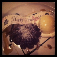 Gostamos imensamente da nossa experiencia no restaurante, que tem um serviço ultra atencioso e delicado. Eles ligaram antecipadamente pro Uriel pra confirmar nossa reserva e perguntaram se era alguma ocasião especial. Por isso me surpreendi quando chegou a sobremesa com um delicado cartão nos desejando "happy anniversary". Estava tudo impecável e delicioso, mesmo o pato—que é uma carne muito forte pro meu paladar, eu consegui comer metade da porção. Saimos imensamente felizes do nosso jantar de 30 anos de casados. E no restaurante do Chez Panisse eu quero voltar mais vezes.