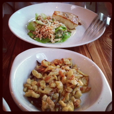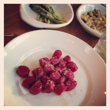 O restaurante Lincoln foi recomendação das revistas Sunset e Food & Wine. Eu queria experimentar no Oregon a comida de um lugar que tivesse a preocupação e o zelo de usar ingredientes locais e sazonais, e que fosse casual e sem firulas, onde um casal brejeiro de turistas pudesse ir tranquilamente numa noite quente sem precisar se vestir como se estivesse indo à opera. Por isso fiz essa escolha e acho que decidi bem. O lugar era um antigo galpão na região modernizada da North Williams Avenue, onde os proprietários, a chef Jenn Louis e seu marido David Welch, mantiveram o máximo da estrutura original. Então para um jantar de uma noite de verão, sentamos numa parte do salão onde as paredes estavam abertas, podendo-se ver o movimento na rua e sentir a brisa do anoitecer. Não vou lembrar pequenos detalhes do que comemos, porque o menu do restaurante muda constantemente, eu não anotei nada e depois do segundo copo de licor de erva-doce caseiro com prosecco já não estava mesmo interessada em memorizar detalhes. Apenas aproveitei o jantar ótimo com o meu marido. De entrada pedimos uma omelete levíssima feita com ovos caipiras, ricota caseira, uma folha verde que eu tive que discretamente googlar o nome e flores capuchinhas. Depois comemos halibut com farro e outra verdura que estava espetacular, mais um nhoque de beterraba, aspargos selvagens e spaetzle com sálvia. Na sobremesa eu pedi o brutti ma buoni, que é um suspiro servido com creme fraiche e conserva de ruibarbo. Estava bom. Mas foi a sobremesa do Uriel que derrubou os muros de Babel, uma panna cotta de chocolate branco com pickles de nectarina e saba, que eu já saí do restaurante decidida que iria tentar fazer em casa [e fiz!]. Saindo do Lincoln fomos tomar um drink num outro lugar super recomendado, o Clyde Common. Lá eu ousei bebendo algo que nunca beberia normalmente, um cocktail Martinez envelhecido em barril de whiskey—gin, sweet vermouth, maraschino, orange bitters, lemon peel. Depois caminhamos um pouco pelas ruas da cidade. Portland fica duplamente linda à noite.
