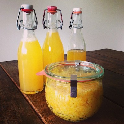 Admito que peguei muitos limões Meyer quango a colega trouxe uma sacola deles para desovar no trabalho. A desculpa é que eu *A M O* esse limão [e quem não ama?] e não podia deixar passar essa oportunidade, pois agora acho que só verei meyer lemons no final do ano. E para não correr o risco de perder uma gota dessa preciosidade e usar quase tudo o que fosse possível, resolvi raspar a casca de oito deles e espremer o suco. Com as raspas eu fiz um açúcar de limão, que ficou super forte e aromático. Eu já tinha feito outros açúcares assim, mas esse ficou diferente pois usei muito mais raspas e não deixei secar, então ficou um açúcar úmido. Foram raspas de 8 limões bem grandes e 4 xícaras de açúcar super fino, daqueles próprios para bebidas que dissolvem mais fácil. E o suco eu guardei na geladeira e fui usando. Uma boa oportunidade para usar o açúcar e o suco é fazer uma limonada. Num copo alto coloque um dedo de suco, complete com água gasosa, adoçe com o açúcar, misture bem e beba.