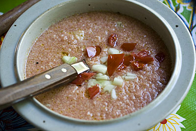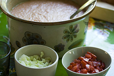 Naqueles dias absurdamente quentes usar fogão é algo proíbido. Essa receita da Deborah Madison é uma sopa fria substanciosa e pode ser preparada com bastante antecedência. Fica refrescante e nutritiva, justamente o que o corpo precisa depois de um dia de bafão exaustivo.