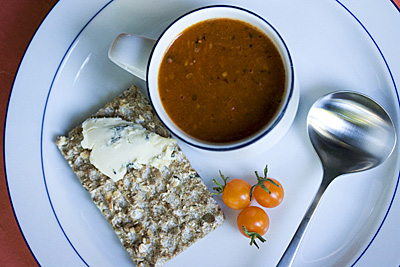 Meu cansaço era tão grande que não tive forças pra clicar foto nenhuma, mas a receita merece ser publicada, pois é uma das mais deliciosas e simples sopa de tomate que já fiz. Usei os tomates orgânicos que ficaram na bancada durante a semana em que fiquei de molho e estavam muito maduros e vermelhos pra virarem salada. Então viraram sopa.