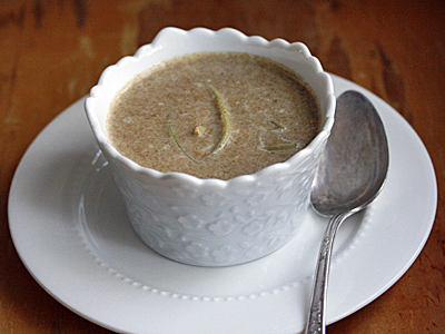 Esta foi uma versão fria desta sopa de abobrinha que fiz no final do inverno. Só que usei um ingrediente diferente. Me inspirei neste artigo do Mark Bittmam sobre caldos, para preparar um caldo de legumes infuso no chá Lapsang souchong. Esse chá é simplesmente o fino da bossa, com um aroma defumado bem intenso. Não é todo mundo que gosta desse sabor, mas eu simplesmente adoro. Já preparei muitos caldos diferentes com ele. Para essa sopa fiz um bem simples, cozinhando asa sobras verdes do alho poró. No final faça um saquinho com umas duas colheres de sopa de chá e deixe de molho no caldo por uns minutos. Não deixe por muito tempo para não correr o risco do caldo ficar muito forte ou amargo. Depois use para fazer a sopa. Neste caso eu usei o caldo gelado. Bata no liquidificador as abobrinhas com o caldo, adicione estragão fresco a gosto, sal, pimenta do reino moída na hora, azeite e um pouquinho de creme de leite. Leve para gelar e sirva. Fica uma sopa perfumada e refrescante, excelente para dias baforentos de verão.