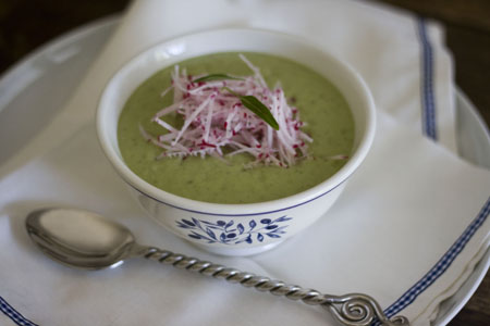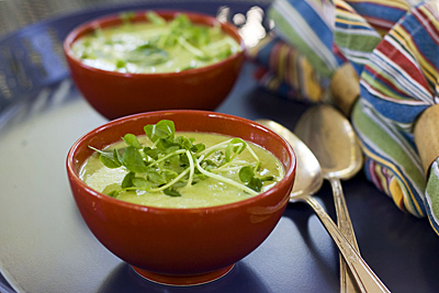 Estou animadérrima com essa idéia de sopas frias! Essa veio na edição de junho da revista Everyday Food e me fisgou de imediato. E tão fácil de preparar que chega a ser quase ridículo. Vai certamente figurar muito no meu menu de verão—para aqueles dias tórridos, que logo logo estarão chegando.